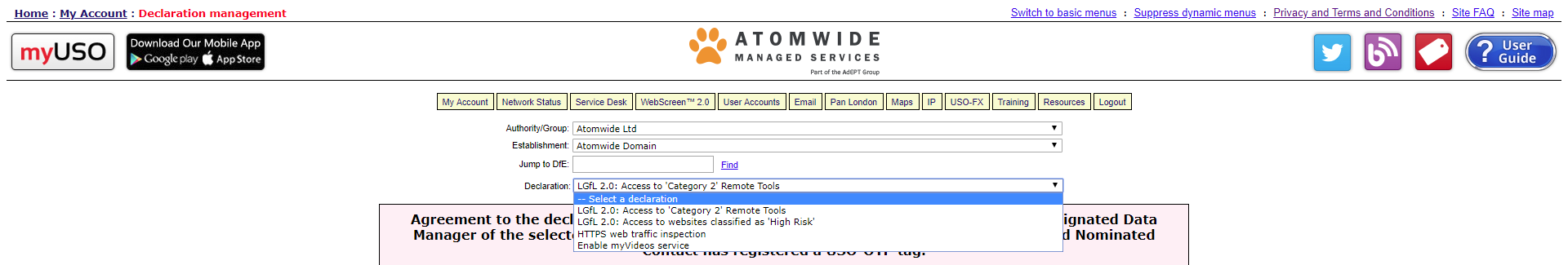A number of declarations exist within the Support Website. My Account >> Declaration Management that can be approved to gain the ability to unblock certain websites or services. These declaration can only be approved the the head teacher/proxy head teacher at the school.
